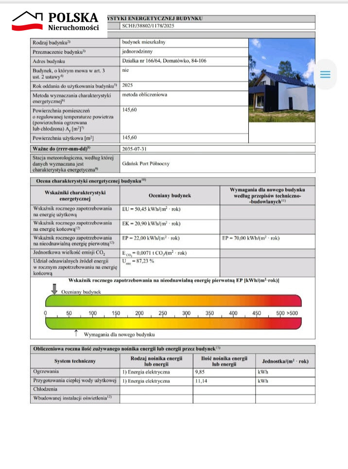 Wykonany z wysokiej jakości materiałów ( właściciel budował dla siebie ) zapewnia maksymalną energooszczędność co widać na załączonym audycie.