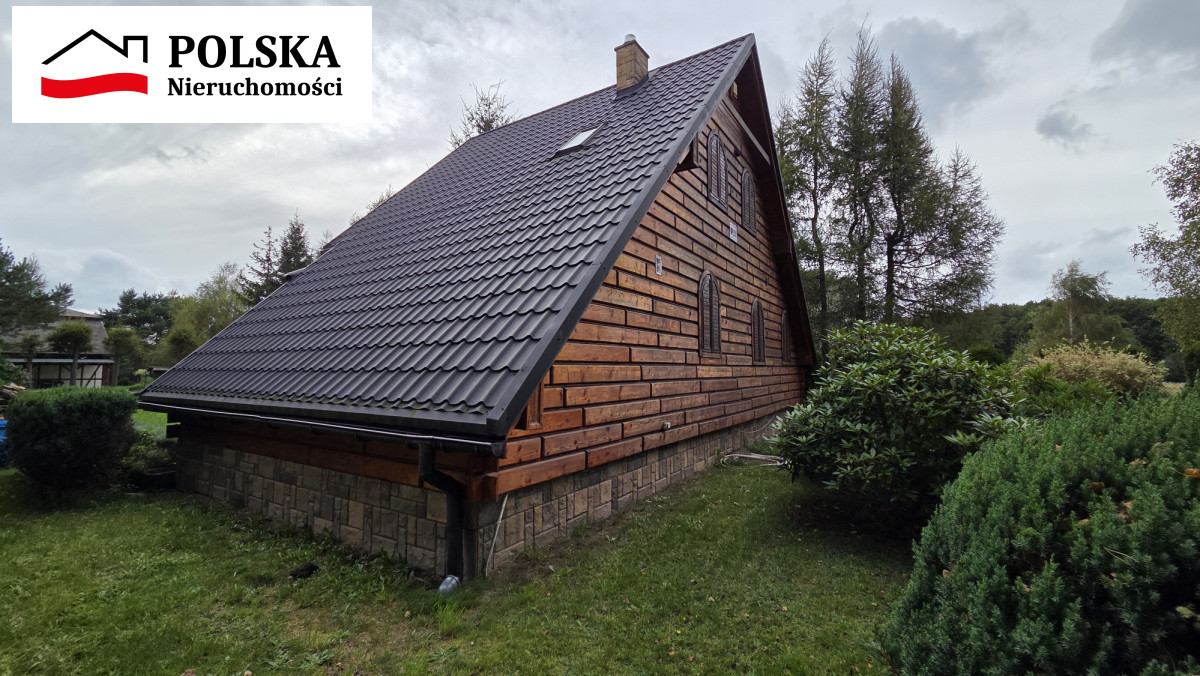 Dom drewniany szkieletowy został zbudowany w 2004 roku, na dachu blachodachówka, okna dwuszybowe z okiennicami, garaż w bryle budynku.