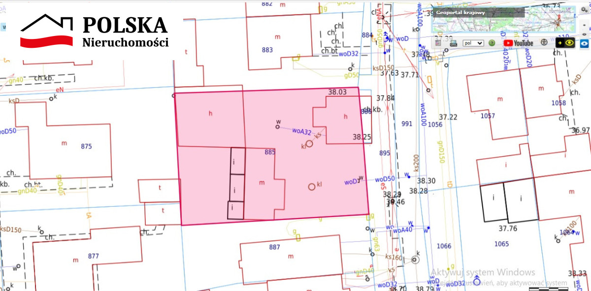 Działka ma kształt prostokątny, na której znajdują się: 2 magazyny murowane, dom, biurowiec, duży kontener blaszany. Cześć lub całość budynków do wyburzenia - według uznania.